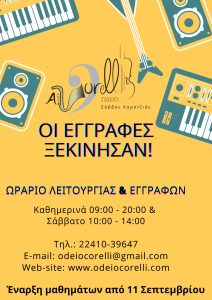 Η μουσική ξεκινά εδώ! Το Ωδείο Κορέλλι ανοίγει τις πόρτες του για τη νέα σχολική χρονιά και προσκαλεί μικρούς και μεγάλους να ανακαλύψουν τη μαγεία